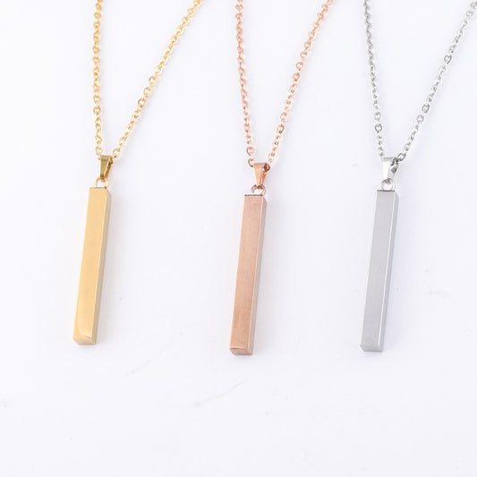 Collier pendentif barre 3D en acier inoxydable gravable (3 pièces)